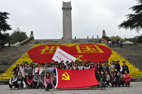 近日,为增强新生入党启蒙教育工作的针对性和实效性,人文艺术系党总支组织2011级新生入党积极分子来到雨花台烈士陵园开展主题实践活动。同学们怀着崇高的敬意先后参观了革命烈士纪念馆、烈士纪念碑和烈士就义群雕,在学习先烈们光辉事迹、接受思想洗礼的同时也表达了对烈士们的无尽怀念和绵绵哀思,上了一堂生动的党课。