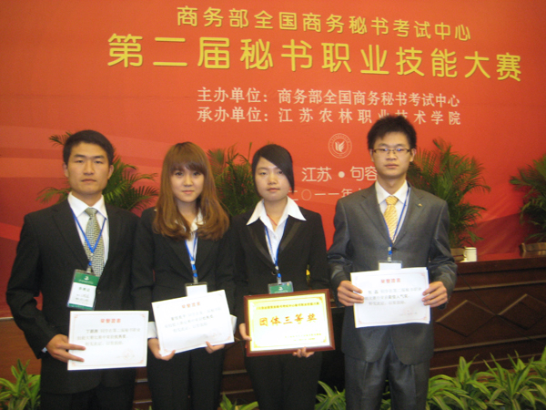 11月12日至13日,由商务部主办的第二届秘书职业技能大赛上,人文艺术系文秘专业(商务文秘方向)4名学子组成的学院代表队与来自全国27所本专科院校的32支代表队同台竞技,发挥出色,获得团体三等奖。