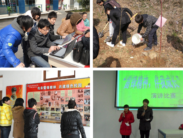 系列活动以“传承雷锋精神,共建文明家园”为主题,包含以雷锋事迹图片展和雷锋剧场为主要内容的雷锋精神宣传、以义务植树和清扫垃圾为主要内容的环保行动、以关爱老人为主题的献爱心活动、立足计算机专业开展的院内志愿服务、以“雷锋精神伴我成长”为主题的演讲比赛等。活动期间,志愿者足迹遍布东山敬老院、方山、紫金山、将军山、地铁站、雨花台烈士陵园等地,全系共有1200人次参加了活动。
