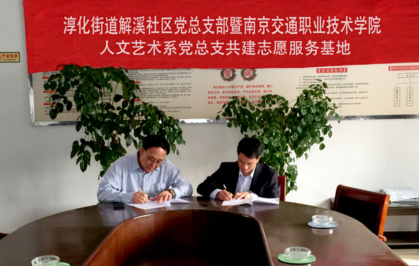 为深入开展社会主义核心价值观教育,引导学生在丰富多彩的社会实践中身体力行,4月1日,人文艺术系党总支与淳化街道解溪社区党总支部签订了共建志愿服务基地协议。双方力求通过合作能够充分发挥互相支持、优势互补、资源互用的作用,给志愿者们提供良好的志愿服务保障,同时打造出具有品牌效应的志愿服务基地。