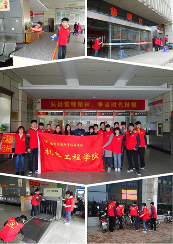 为深入践行社会主义核心价值观,努力打造师生参加社会实践和开展志愿服务的平台。本学期以来机电工程学院组织青年志愿者利用“双休日”、“清明小长假”在江宁汽车客运站打扫卫生、服务旅客、整理非机动车、宣传文明出行。他们以自己的实际行动,弘扬了雷锋精神,激发了社会正能量,得到了客运站的工作人员和广大旅客的高度赞扬。