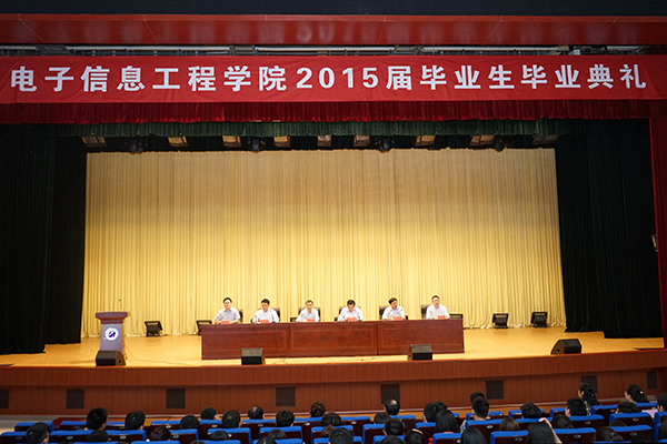 5月15日上午,电子信息工程学院2015届毕业生毕业典礼在图书馆报告厅隆重举行。学院张毅院长,教务处祁洪祥处长、学工处王道峰处长及电子信息工程学院相关负责人出席典礼。教研室主任、教师代表、毕业班班主任、辅导员老师、2015届全体毕业生参加了毕业典礼,典礼由电子信息工程学院院长吴兆明主持。