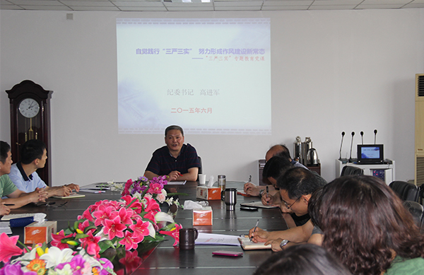 6月3日下午,汽车工程学院党总支开展“三严三实”专题教育党课,正式启动 “三严三实”专题教育。学院纪委书记高进军作了题为《自觉践行“三严三实” ,努力形成作风建设新常态》的专题党课辅导。“三严三实”专题教育动员暨工作部署会由汽车工程学院党总支书记康建军主持,学院全体党员参会。根据学校安排,纪委办公室和督导室全体成员一并参加了此次会议。