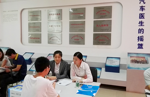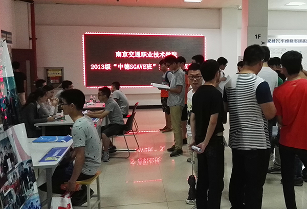 6月26日上午,汽车工程学院2013级“中德SGAVE班”实习就业双选会在致远楼举行。奥迪、宝马、保时捷、奔驰、大众五大德系品牌的7家经销商冒雨赶来参加招聘。2013级“中德SGAVE班”30名学生秩序井然地依次进入会场与经销商代表进行洽谈。经过近两个小时的双向选择,多名优秀学生被企业看中,当场签订协议。