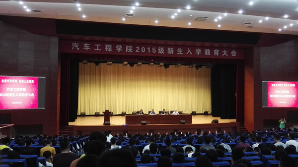 9月14日晚,学院图书馆报告厅内,汽车工程学院2015级新生入学教育大会在振奋人心的国歌声中隆重举行。汽车工程学院院长文爱民、党总支书记康建军、副院长陈林山、党总支副书记滕兆霞,2015级新生班主任、辅导员及618名新生到会参加。