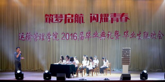 5月26日下午,“筑梦启航 闪耀青春”运输管理学院2016届毕业生联欢会在图书馆报告厅举行。第十五届校园文化艺术节暨第十届读书节组委会办公室主要成员,运输管理学院负责人、专业教师、班主任、辅导员及600余名学生参加了联欢会。