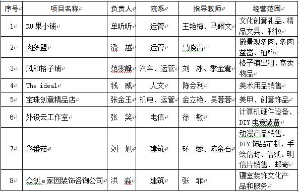 经学生团队申请、招生就业处初审、学院组织综合评议,拟定以下8个创业团队入驻大学生校内创业孵化基地,现予以公示: