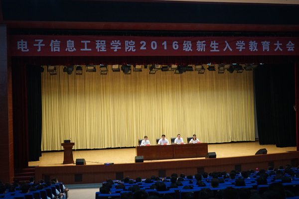 9月12日上午,电子信息工程学院2016级新生入学教育大会在图书馆一楼报告厅隆重举行。电子信息工程学院党政领导、各教研室(部门)负责人、2016级全体班主任和391名新生参加了会议。会议由党总支副书记张丽君主持。