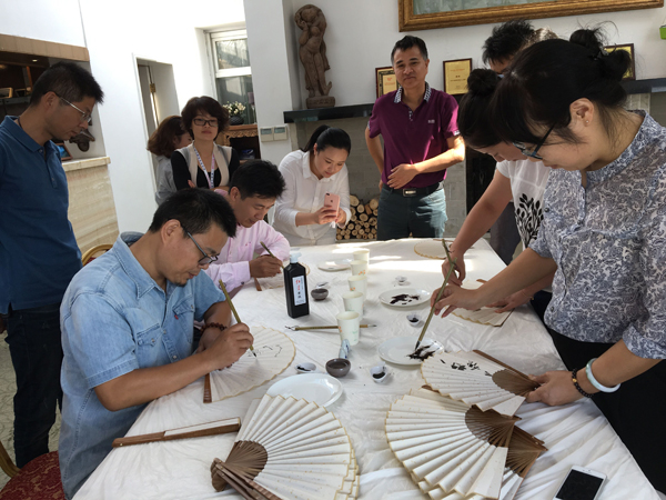 2016年9月18日,人文艺术系组织教师开展了以参观高友飞画展为主题的教研活动,人文艺术系教师观摩了高友飞老师的画作,对高老师在艺术上的成就表示了由衷的敬佩。活动中,大家还聆听了知名专家对作品的精彩点评,本次活动,系部教师还和参展作品的作者一起举行了扇面DIY活动,同场献计,加深交流。