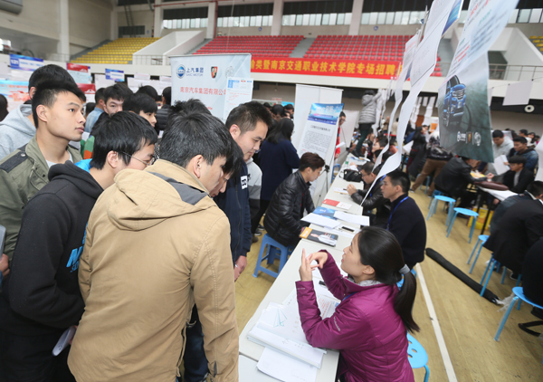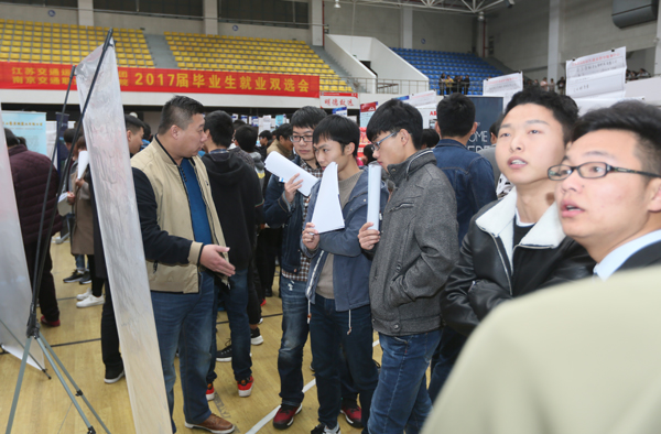 11月9日,江苏省2017届百校联动就业活动——江苏省2017届运输类暨南京交通职业技术学院专场招聘会在行健馆举行。汽车工程学院组织53家用人单位参会,包括苏汽客运集团等国有企业,保时捷、奔驰等高端品牌汽车服务公司和南汽等汽车生产厂家。招聘会现场提供了约1100个岗位,涵盖了汽车维修、汽车美容、钣金喷漆、汽车销售、服务顾问、查勘定损、二手车销售等岗位,专业对口率100%。