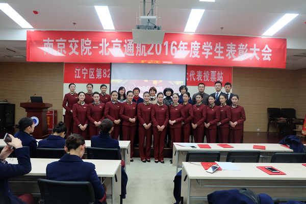 2015级学生评优表彰大会上,北京通航控股对2015级空中乘务专业17名优秀学生、优秀学生干部、专业技能优秀个人、优秀志愿者进行了表彰。运输管理学院院长吕亚君向获奖学生表示祝贺,并对空中乘务专业学生提出三点希望:一要修炼道德品行,形成乘务员岗位任职的基础条件;二要苦炼专业技能,确保形体动作、服务礼仪以及服务意识从“引导规范”向“自觉自然”转变;三要锤炼意志毅力,倍加珍惜每一次课、每一次训练、每一次志愿服务,从“被管而动”向“不管也动”的自觉行为转化。北京通航控股有限公司校企合作项目事业部学生管理处处长栾光馥鼓励大家结交“两个朋友”——图书馆和体育馆,用锻炼增强体质,用知识充实自己;传授航空服务人员提高专业本领的“两个秘诀”——健康来自早上,成功来自晚上,务必养成时间管理本领,才能适应空乘岗位高强度、高精度的客舱服务要求。