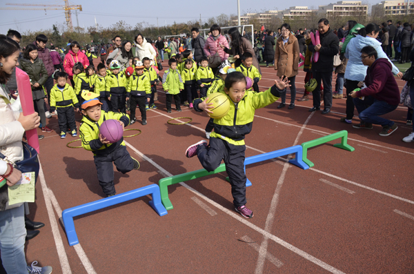 南京华耀之星幼儿园大、中、小班近2500名学生与家长参与了本次运动会。在双方的精心组织和学院相关部门大力支持下,华耀之星幼儿园工作人员与路桥与港航工程学院百名志愿者通力合作,为家长和孩子们带来了一场精彩纷呈的运动会。学院国旗班与幼儿园的小朋友乐队组成的“小虎队”国旗护卫队举行庄严的升旗仪式。精心策划的二十几种运动项目,分别在田径场和行健馆内进行。
