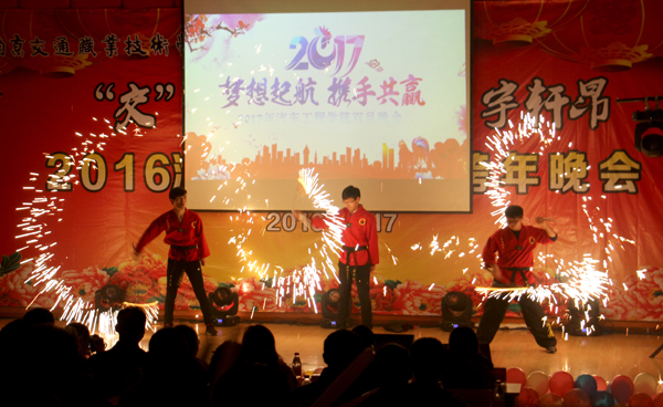 “踏着青春奏响的节拍,用激昂的活力书写又一个春天的精彩!”汽车工程学院2016-2017跨年晚会于12月29日晚在大学生活动中心精彩上演。汽车工程学院全体院领导、各教研室主任及全体辅导员老师与汽车学子欢聚一堂,喜迎2017年元旦。