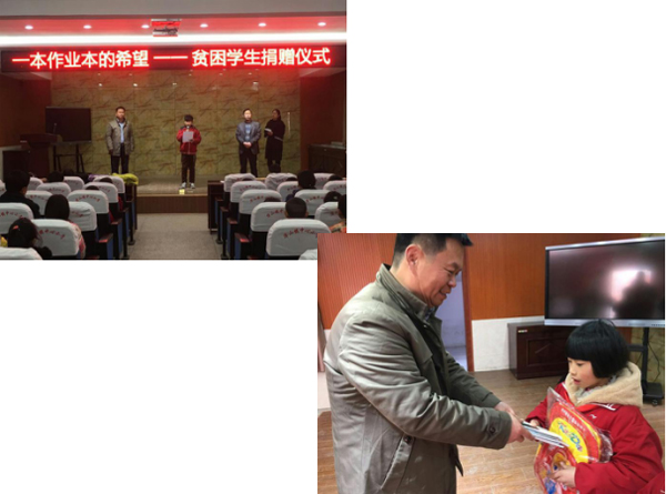 3月10日上午,在华山镇中心小学开展了“一本作业本的希望”贫困学生捐赠仪式。华山镇中心小学李光亚校长和受助学生代表代表表达了对路桥与港航工程学院师生爱心善举的感谢。丰县教育网、丰县文明网就本次活动也进行了专题宣传报道。