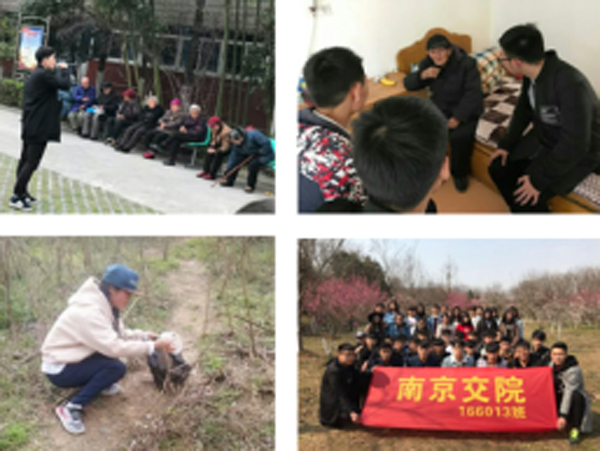 在北京东路小学,166024班同学通过和学生一起制作飞机简模、讲述雷锋故事等,让小朋友们在快乐的氛围里提高了科技知识,重温了雷锋精神。在东山敬老院,院学生会用节目表演、打扫卫生的方式,陪老人度过了一个欢乐祥和的下午。在文博苑社区,“迎客松”志愿者服务队通过节能知识问答、赠送盆栽等,宣传绿色节能的意义,倡导绿色生活的理念。在方山地质公园,156031班、166013班通过捡拾垃圾、宣传环保,感染带动了沿途游客,同学们满身汗水,在美化环境的同时,也增强了体魄。