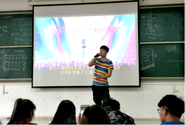 5月24日下午,由建筑工程学院学生会宿管生活部主办的“青春不放纵,唱响经典歌”宿舍好声音歌手大赛拉开帷幕。赛前,草莓吉他社同学带来了精彩的Rap说唱,12位选手随即登台,用心献唱。比赛不仅丰富了同学们的宿舍文化生活,也增加了大家对经典歌曲的喜爱。