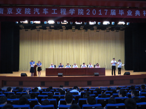 毕业典礼伊始,毕业生领取了毕业纪念品“汽车医生”徽章。9时整,与会人员共同观看了《毕业快乐》视频短片,共同回首在南京交院学习生活的三年。