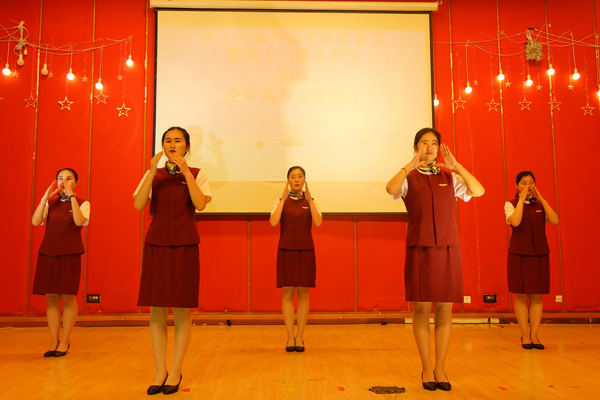 6月20日晚,校园文化艺术节暨读书节运输管理学院“专业秀”学生才艺大赛、2017空中乘务专业晚会在大学生活动中心热烈举行。本次“专业秀”学生才艺大赛由空中乘务专业主办,参演的同学们用开场《啦啦舞》、小品《三百六十五个祝福》、舞蹈《青花瓷》、T台秀、手语操《感恩的心》等丰富的艺术形式,生动多彩地展示了专业特色与教学成果,展现出空乘专业学子博爱强艺、精诚团结、追求卓越的时代风貌。整场演出充满蓬勃向上的青春色彩,舞美声光如梦如幻,赢得了全场观众的热烈掌声和一致好评。