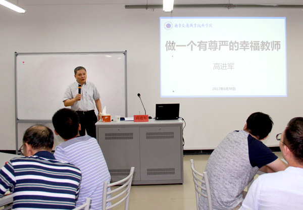 学院纪委书记高进军以“做一个有尊严的幸福教师”为题,结合执教多年的感悟,阐述了如何提升教师“底气”,希望大家要端正心态、提升境界,做一个有尊严的幸福教师。