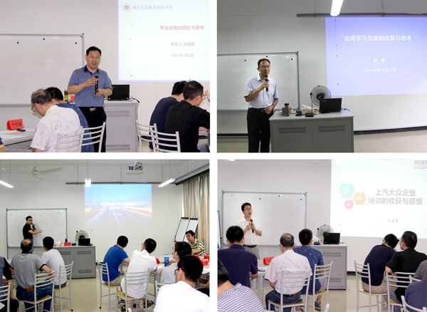 汽车工程学院党总支书记赵勇以“台湾学习交流的收获与思考”为题,阐述了在建国科技大学、明新科技大学近两周的学习过程和收获,分享了加强教师修养的思考。