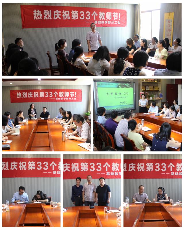 9月13日下午,基础教学部举办了庆祝第33个教师节暨上好第一节课心得分享活动。系部全体教职工聚集一堂,用向从教30周年教师致礼、老教师回顾如何上好第一节课、青年教师介绍开展云班课教学的体验、“青蓝工程”结对拜师仪式等形式,分享教学心得,共庆教师自己的节日。