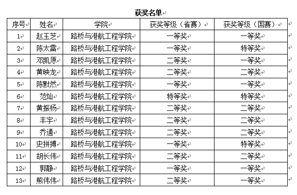 近日,由教育部高等教育司委托教育部高等学校力学教学指导委员会力学基础课程教学指导分委员会、中国力学学会和周培源基金会共同主办的第十届江苏省大学生力学竞赛暨首届全国高职高专基础力学邀请赛成绩揭晓。路桥与港航工程学院共有22位同学参加本次比赛,最终获得国赛3个特等奖、5个一等奖、5个二等奖;省赛1个特等奖、5个一等奖、7个二等奖的好成绩,路桥与港航工程学院于苏民老师荣获“优秀指导教师”称号。