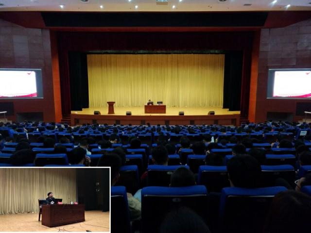 10月24日晚,电子信息工程学院组织2017级全体新生及1750611班、1760112班共540余名学生开展了入党启蒙教育。校党委组织部王道峰部长以“党的基本知识”为题,给大家上了一堂生动的党课。电子信息工程学院党总支负责人、学工办相关老师参加了活动。