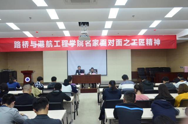 10月28日下午,路桥与港航工程学院举行名家面对面之工匠精神讲座。中国人民解放军5311厂的高级技师、全国劳动模范程军荣担任主讲。党总支副书记彭涌涛主持讲座,16、17级学生现场聆听。
