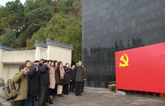 在皖南事变烈士陵园,全体党员怀着肃穆的心情,列队瞻仰和参观了入口纪念群、主题广场、主碑纪念广场和无名烈士墓。在“皖南事变死难烈士永垂不朽”纪念主碑前,全体党员面对党旗庄严宣誓,重温了入党誓词。全体党员还参观了云岭新四军军部旧址。途中,全体党员一起收看了电视剧《新四军》中皖南事变部分,对皖南事变发生的背景、过程有了全面的了解。
