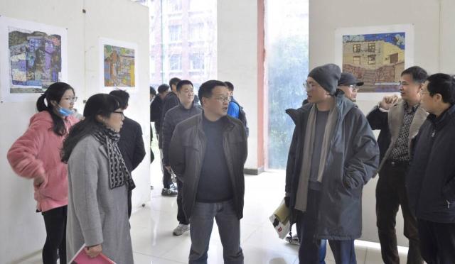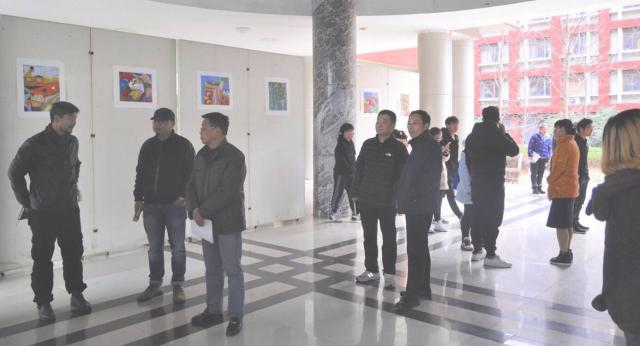 近日,人文艺术系2017级同学校外写生暨二维课业展在明德楼一楼大厅开展。副院长杨益明、党委宣传部部长李国之及人文艺术系师生一起参观了展览。