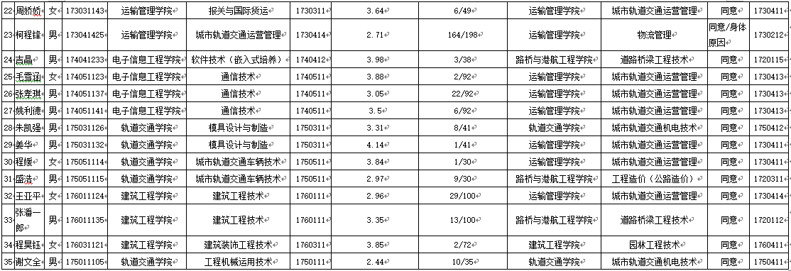 根据《关于做好2017级学业优异学生申请转专业工作的通知》要求,经个人申请、学校初审,拟同意下列35名学生(附表见后)的转专业申请,现予以公示。