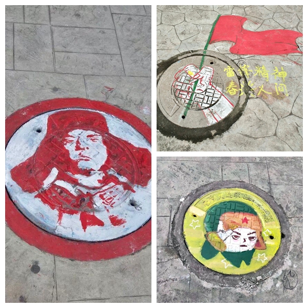 经过前期的筹备,3月12日起,志愿者们在学校校园内进行“美化校园井盖”活动,虽然天气多变,依然挡不住志愿者们创作的热情。经过多日的努力,原本灰黑死板的井盖上跃然出现了文明标识、文明用语,这小小的方寸之地在志愿者们的艺术渲染下成了校园文明的宣传栏和校园文化的视觉走廊,给校园环境增添了一抹靓丽的色彩,收获了过往师生的赞赏。
