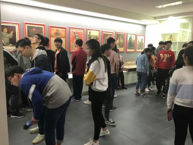 伴随承馆长充满激情的讲解,同学们依次参观了红馆4个展厅的珍贵馆藏,主要包括毛主席同志和马、恩、列、斯等历史伟人及新中国十大元帅、十名大将栩栩如生、惟妙惟肖的瓷版画像,以新中国成立以来各个主要历史阶段的重大历史事件为背景的珍贵宣传画作,反映老一辈中国共产党人和革命先烈英勇事迹和献身精神的塑像、像章、宣传画等500余件藏品。