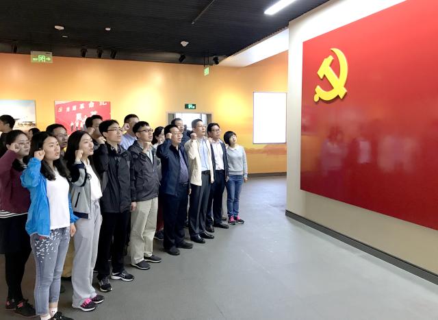 在纪念馆宣誓墙前鲜艳的党旗下,“我志愿加入中国共产党,拥护党的纲领,遵守党的章程,履行党员义务……永不叛党。”一句句庄严的承诺和铮铮誓词铿锵有力。全体党员右手握拳,面对党旗,重温了入党誓词,回忆了入党时的满腔激情和崇高追求,接受了一次深刻的精神洗礼。