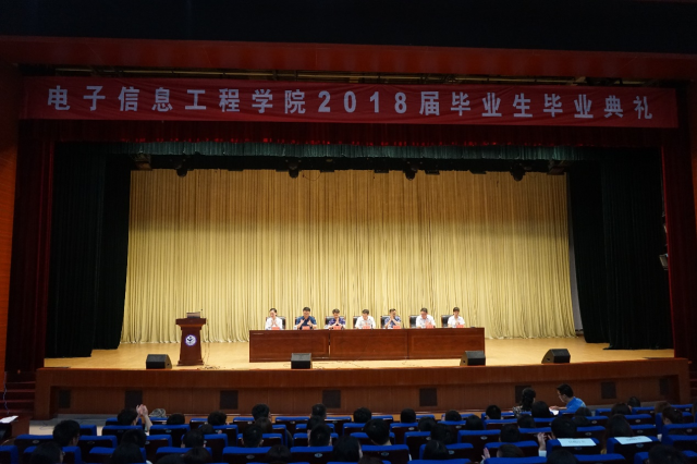 5月18日上午,电子信息工程学院2018届毕业生毕业典礼在图书馆报告厅隆重举行。副院长应海宁,教务处处长刘阳,学工处处长康建军,以及电子信息工程学院相关负责人出席典礼。各教研室主任、教师代表、毕业班班主任、辅导员老师、2018届全体毕业生参加,典礼由电子信息工程学院院长吴兆明主持。