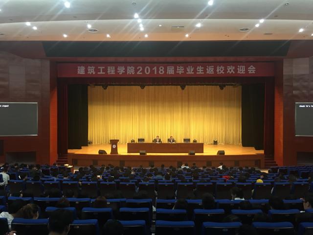 5月22日下午14:30,建筑工程学院2018届毕业生返校欢迎会在图书馆报告厅顺利召开。参加此次会议的有建筑工程学院陈晋中副院长和党总支祁顺彬副书记以及建筑工程学院2018届返校毕业生们。