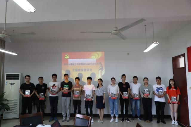 全体党员在李良田老师的带领下面向党旗郑重宣誓,重温入党誓词;毕业生党员以一名合格党员的标准,畅谈了在大学生活中的成长和收获;彭涌涛副书记从讲党性、爱学习、乐奉献、识自我等方面给毕业生党员上了一次党课;同时向每一位毕业生党员赠送《习近平的七年知青岁月》一书。