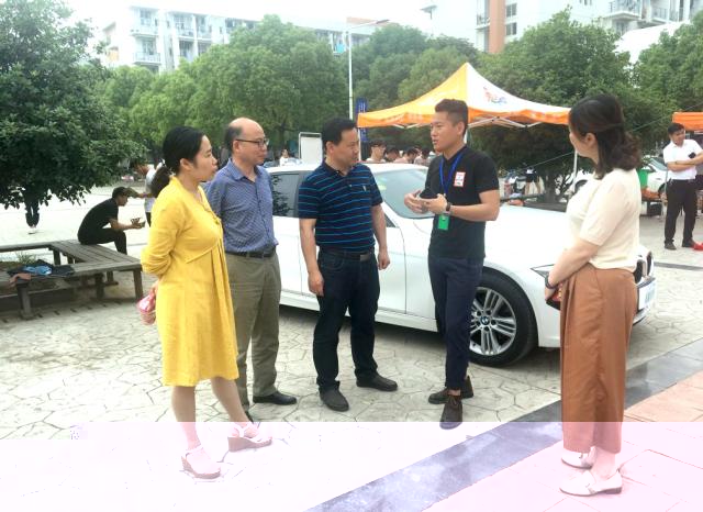 5月29日中午思源堂广场上演了一场豪车“盛宴”,十几辆奔驰宝马一字排开,面向大学生提供租车服务的推广活动火热举行,租车服务咨询、二手车交易要求、汽车模特走秀、汽车知识有奖问答、汽车服务实习岗位招聘等吸引了800余名学生和教师到现场观看、咨询了解情况,这是机关二党总支党员王平老师联系班级1710311学生李文杰等同学作为全民享车公司的校园代理组织的创业活动。党委贾俐俐书记对活动的成功举办表示祝贺,希望更多的同学投身到创业实践活动中去。汽车工程学院院长文爱民等到场指导。
