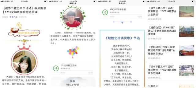 为激发同学们对朗读艺术的兴趣,4月起,汽车工程学院开展了以“声动交院,书香人生”为主题的“我来朗读”及每月书单推荐活动。