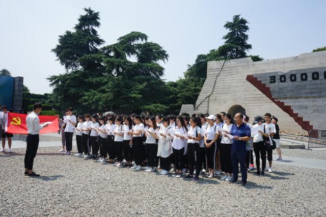 大家在侵华日军南京大屠杀遇难同胞国家公祭鼎旁诵读公祭铭文,并向遇难同胞集体默哀。在史料展馆,逼真的情景再现、翔实的历史资料、层层堆积的白骨,让全体学员深感身为“强国一代”的使命庄严。