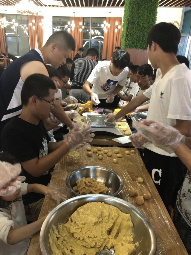 同学们从未接触过月饼手工制作,二食堂糕饼店的师傅细心地对参与活动的40余名学生进行月饼制作培训。随后,同学们以极大的热情参与到手工制作中,在食堂师傅的指导下,每名同学制作了6块月饼。现场气氛热烈,活动一直持续到21:30。学院及时安排快递寄出,以期在中秋佳节家人能够收到孩子们亲手制作的月饼。