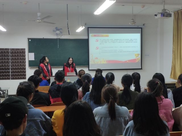 为了提高同学们的思想觉悟,增强对党的认识,激发大家的入党积极性,鼓励同学们以实际行动向党组织靠拢,拓展大学生思想政治素质建设的有效途径。10月15日、16日晚,运输管理学院党总支组织在校的1名预备党员和18名发展对象培训班学员作为主讲人,建立和班级的长期联系机制,分别对接学院2018级的15个班级,对全院647名新生进行了第二阶段的入党启蒙教育。