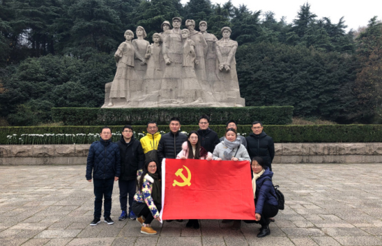 下午前往雨花台烈士陵园,瞻仰革命烈士纪念碑。在庄严肃穆的纪念碑前,全体党员列队肃立,向革命烈士默哀,并缓步绕行纪念碑一周,表达对革命先烈的缅怀之情。