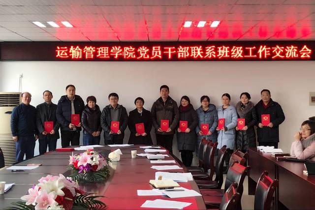 2018年12月12日下午,运输管理学院党总支在齐贤楼418会议室召开了党员干部联系班级工作交流会,联系院领导、纪委书记崔建宁出席,运输管理学院党政领导、2018级全体班主任和第二班主任、2018级学生代表近50人参加了本次会议。会议由党总支书记王艳梅主持。