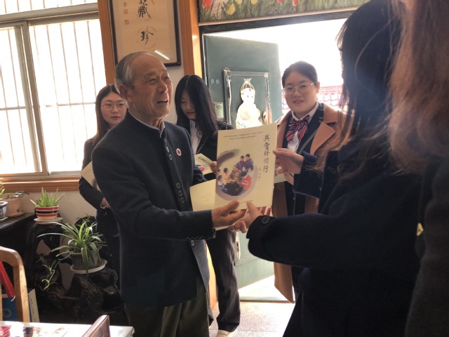 23日上午,赵明才老先生热情接待了我们,并向大学生们介绍了雷锋的生平事迹,阐述雷锋精神对几代人的积极影响和新时代雷锋精神被赋予的新内涵。学生们听后深受启发和教育,大家各抒己见,发表见解,决心从自己做起,从小事做起,把雷锋精神发扬光大。之后,赵老看着充满朝气的大学生,无比欣慰,把一本本有关雷锋事迹的书递到学生手中,并感慨到:“看到这么有活力的年轻人仍然坚持学雷锋,树新风,就看到了民族振兴的希望啊!” 最后,新华社记者也在对赵老进行专访,并帮我们合影留恋。