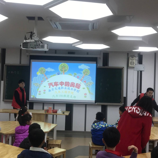 3月21日下午,以汽车工程学院汽运186班团支部为主体的志愿者,赴南京市百家湖小学开展了“汽车知识走进课堂、小学生感受汽车魅力”雷锋月志愿实践活动。