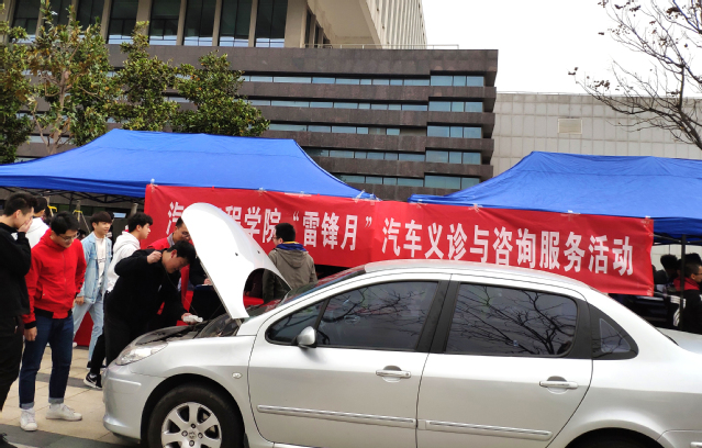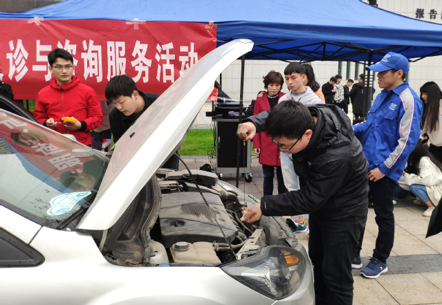 3月27日下午,汽车工程学院“雷锋月”汽车义诊与咨询服务活动在图书馆南侧广场进行,活动旨在关爱全校师生员工的爱车,宣传健康合理用车,并提供保养维修建议。