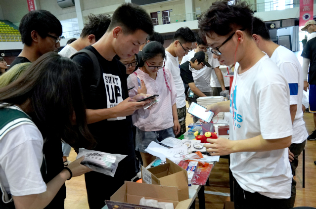 临近期末,大二学生即将参加实习,为帮助离校学生更好处理不方便携带物品和闲置物品,6月24日下午,路桥与港航工程学院在行健馆举办了“跳蚤市场”活动。参加活动的班级精心布置了自己的摊位,各类书籍、运动用品、日常电子用品、学习工具、小饰品等一应俱全,实惠的价格吸引了很多同学。他们兴致勃勃地在摊位间挑选着自己中意的物品,有些同学在将自己闲置的物品卖出去之后,又用赚来的钱现场去买自己需要的物品,真正做到物尽其用,实践了绿色环保理念。