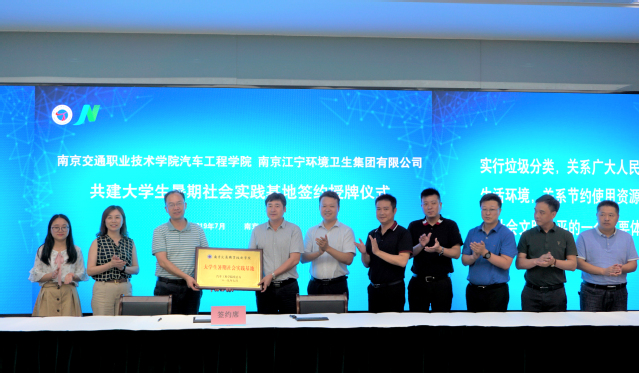 7月4日,汽车工程学院与南京江宁环境卫生集团有限公司举行了共建大学生暑期社会实践基地签约与授牌仪式。南京江宁环境卫生集团有限公司副总经理施俊、姚礼国,学院党总支书记赵勇、党总支副书记王黛碧,学工办周杨老师以及十名暑期社会实践团队成员出席了本次活动。