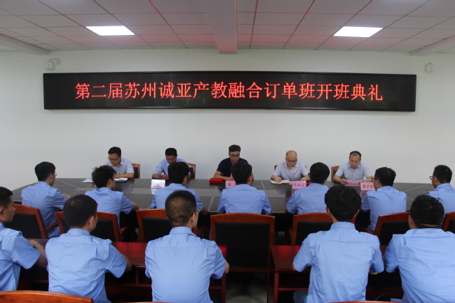陈林山院长感谢苏州诚亚的领导和同仁对学院发展支持,对30名同学表示热烈祝贺。他希望同学们珍惜机会,努力学习专业知识、专业技能,早日成为苏州诚亚的优秀员工,希望学院和苏州诚亚的合作更加紧密,不断提高人才培养质量,为社会培养更多优秀人才。